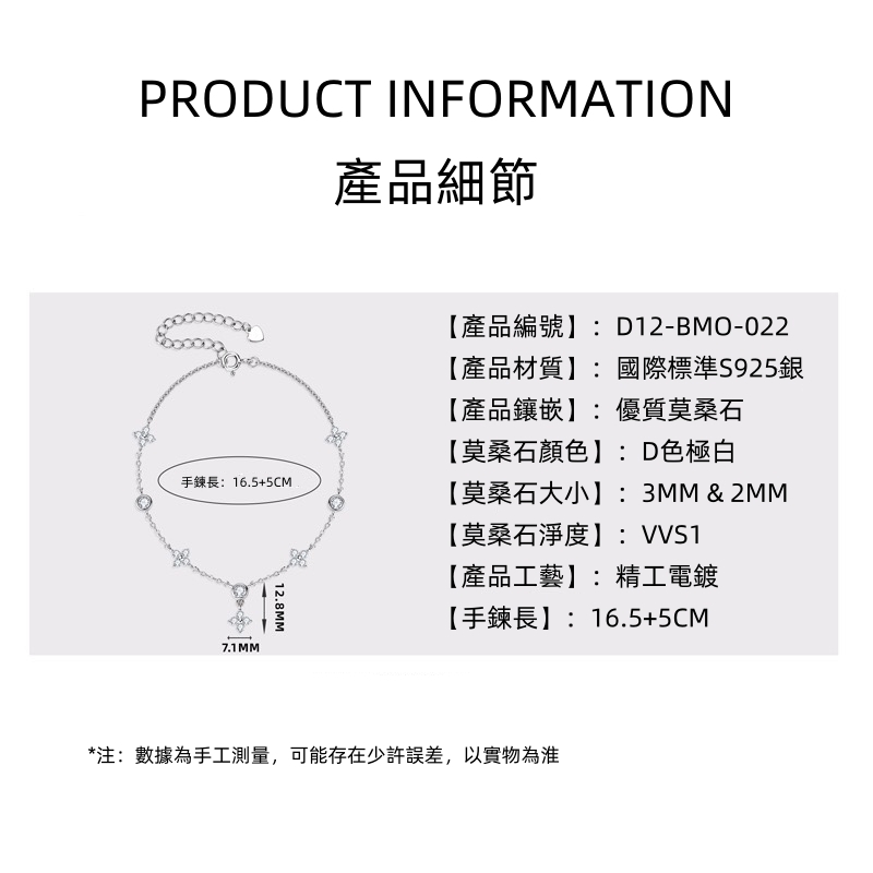 產品規格:16.5+5cm,莫桑石3mm&2mm